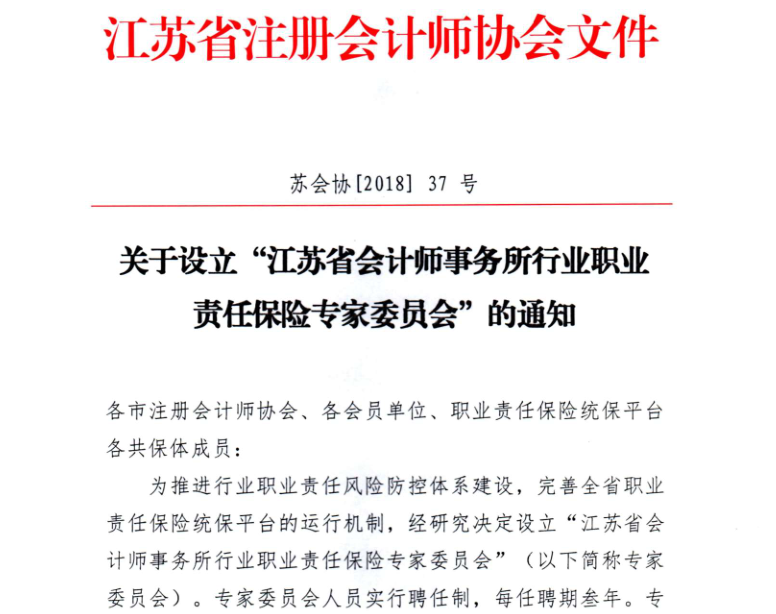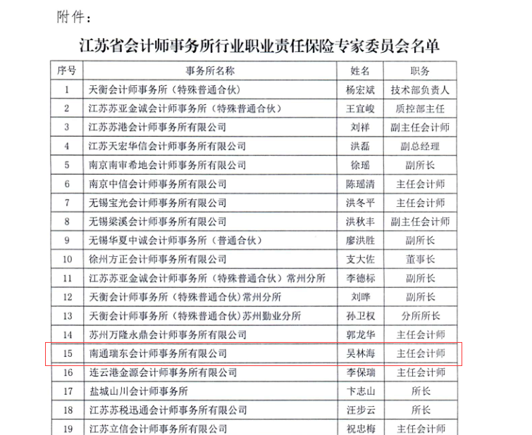 我所吳林海入選江蘇省會計(jì)師事務(wù)所行業(yè)職業(yè)責(zé)任保險(xiǎn)專家委員會